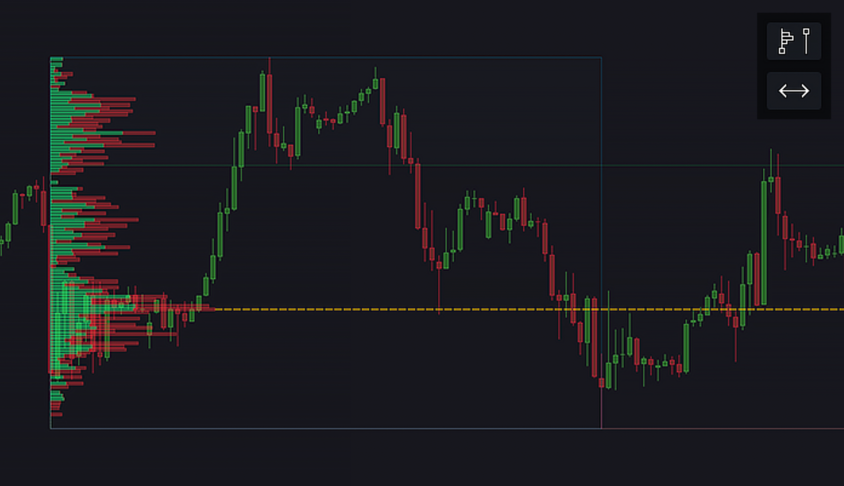 Displays the volume profile of a chosen range, helping traders identify key support and resistance levels.